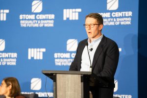 On November 3, the Stone Center celebrated its launch with an event that included discussions on wealth inequality, liberalism, and pro-worker AI. The Stone Center (James M. and Cathleen D. Stone Center on Inequality and Shaping the Future of Work) is a non-partisan research organization at MIT that applies economics research to identify innovative ways to move the labor market onto a more equitable trajectory.